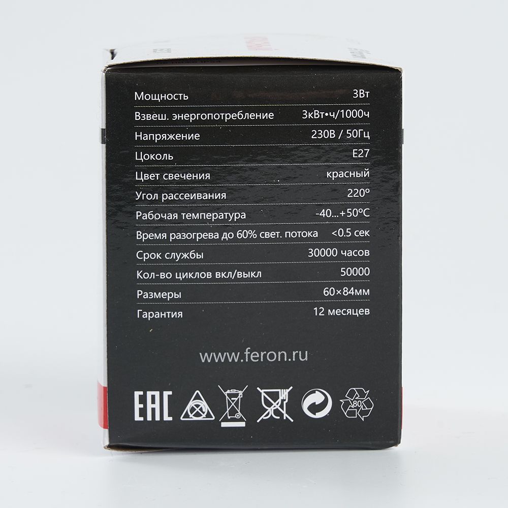 Лампа светодиодная FERON LB-371, G60 (шар), 3W 230V E27 (красный), рассеиватель матовый красный, угол рассеивания 270°, корпус пластик, 84*60мм