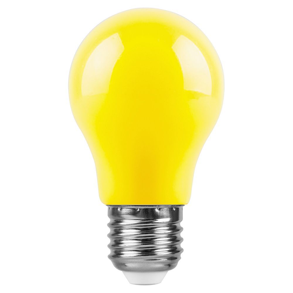 Лампа светодиодная FERON LB-375, A50 (шар), 3W 230V E27 (желтый), рассеиватель матовый желтый, угол рассеивания 220°, корпус пластик, 91*50мм