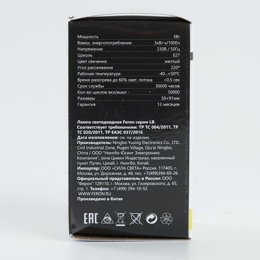 Лампа светодиодная Feron LB-375 E27 3W матовая 230V желтая