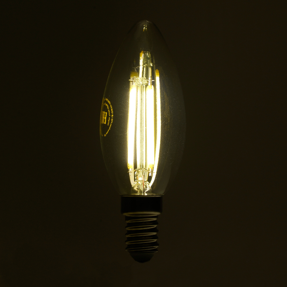 Лампа светодиодная филамент FERON LB-1206, C35 (свеча), 6W 175-265V E14 2700К (белый теплый), рассеиватель прозрачный 960Lm, угол рассеивания 270°, 98*35мм