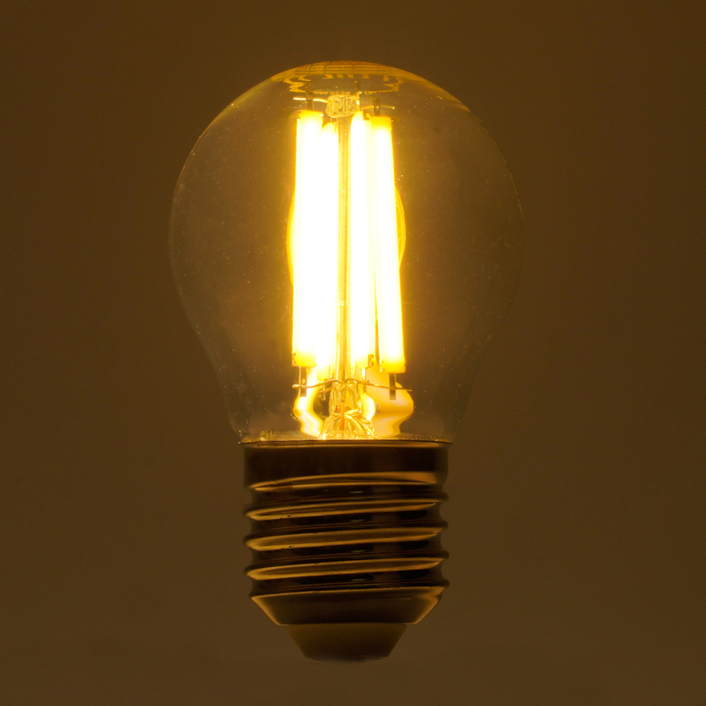 Лампа светодиодная филамент FERON LB-1708, G45 (шар), 8W 175-265V E27 2700К (белый теплый), рассеиватель прозрачный 1280Lm, угол рассеивания 270°, 76*45мм