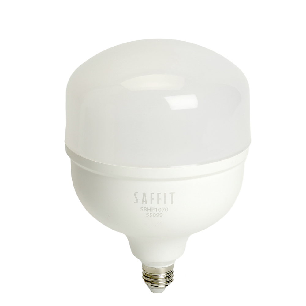 Лампа светодиодная SAFFIT SBHP1070, колба (промышленная), 70W 230V E27-E40 6400К (дневной), рассеиватель матовый белый, 6500Lm, угол рассеивания 220°, 189*138мм