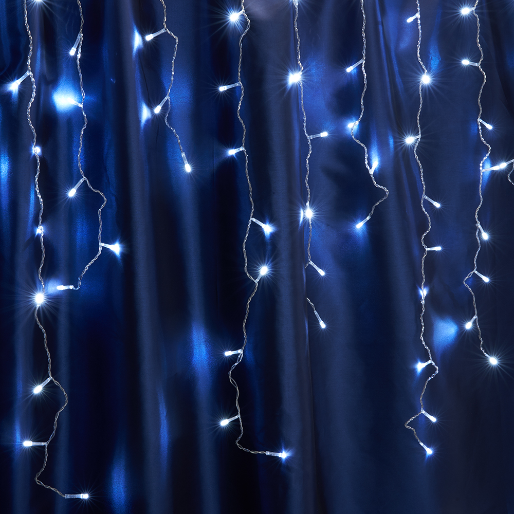 Гирлянда дождь FERON CL22, 200LED, 5000К (белый), с эффектом стробов, 4.5м+3м белый шнур, расстояние между светодиодами 10см, IP44, 10W, от сети последовательное подключение до 5 гирлянд