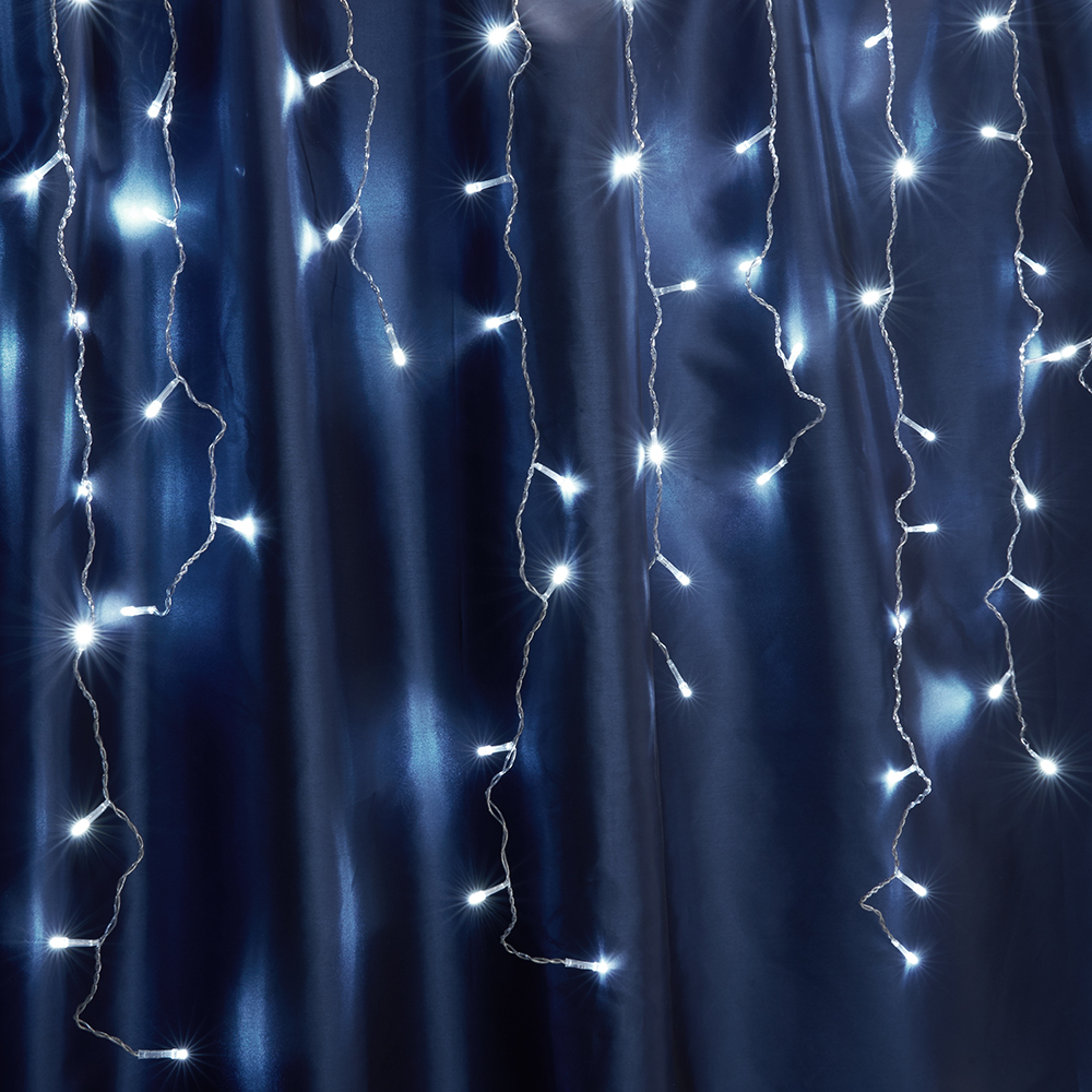 Гирлянда дождь FERON CL23, 240LED, 5000К (белый), с эффектом стробов, 5,3м+3м белый шнур, расстояние между светодиодами 10см, IP44, 12W, от сети последовательное подключение до 5 гирлянд