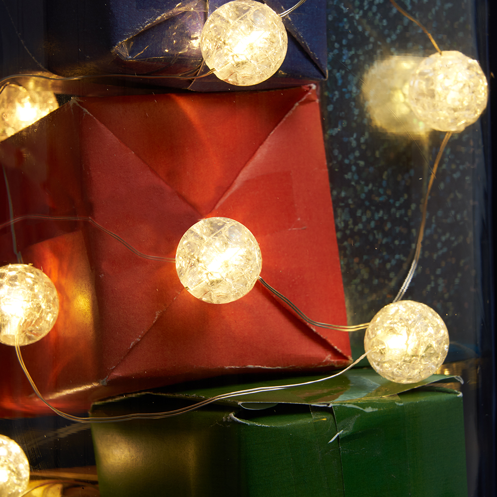 Светодиодная гирлянда Feron CL565 линейная Лед шарики, статичная 3м + 0.3м 2700K с питанием от батареек, прозрачный шнур