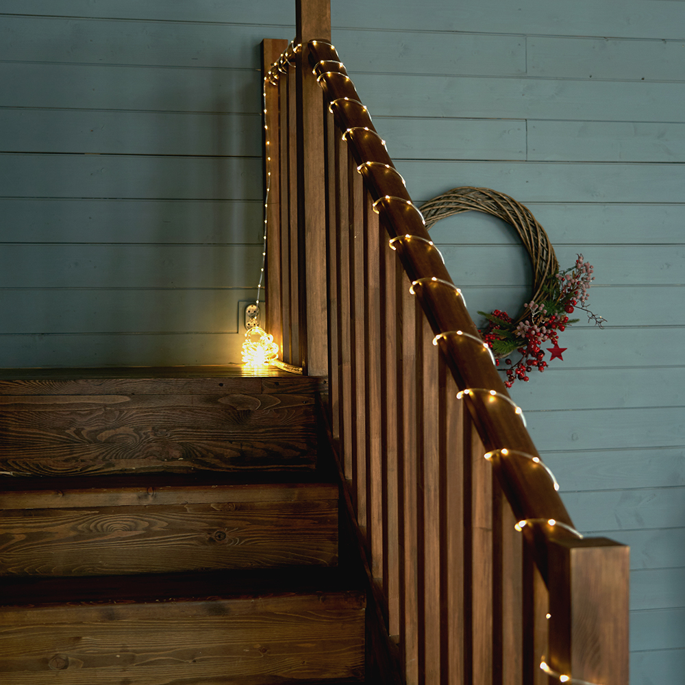 Гирлянда линейная FERON CL587, 260LED, 2700К (теплый белый), настраивается контроллером, 13м+2м прозрачный шнур, расстояние между светодиодами 5смсм, IP20, 3W, от сети контроллер в комплекте, последовательное подключение - НЕТ