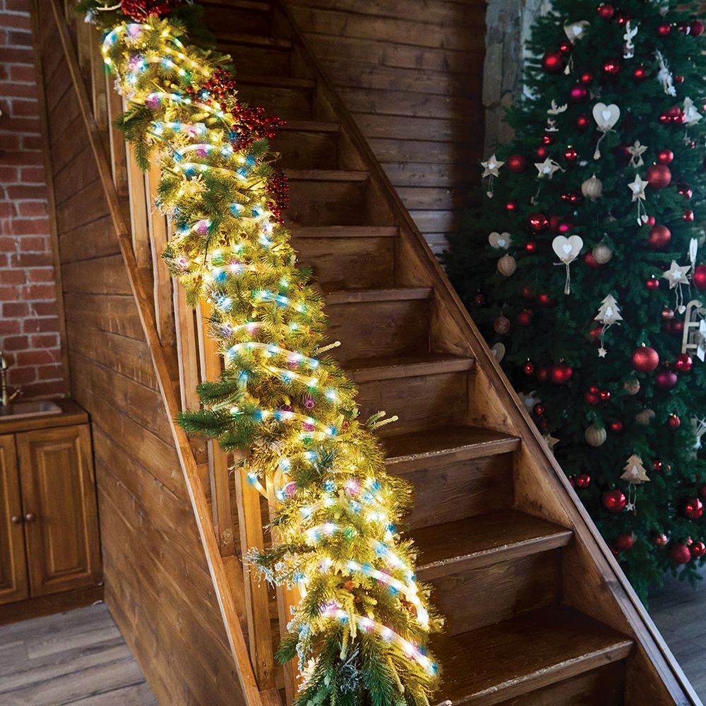 Гирлянда линейная FERON CL587, 260LED, (мультиколор), настраивается контроллером, 10м+2м прозрачный шнур, расстояние между светодиодами 5смсм, IP20, 3W, от сети контроллер в комплекте, последовательное подключение - НЕТ
