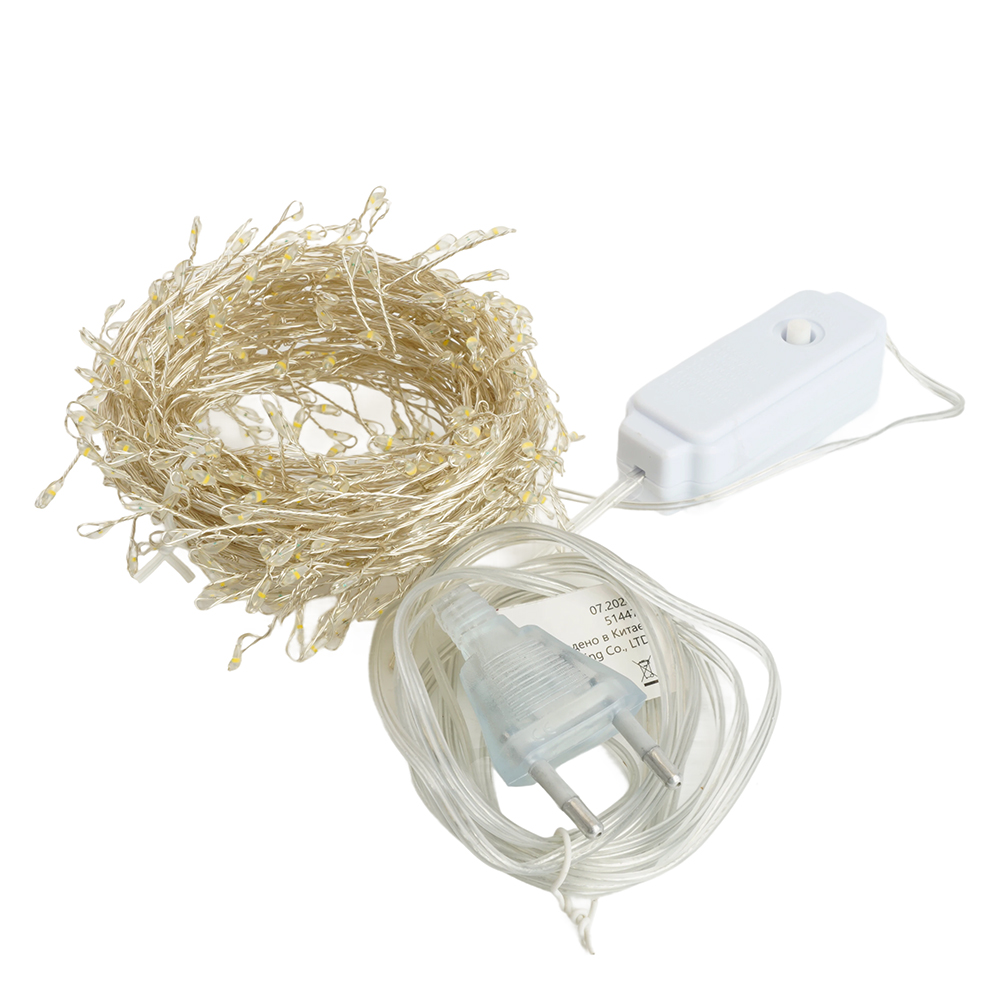 Светодиодная гирлянда Кластер (на проволоке) Feron CL584 линейная 12м 5000К, c питанием от сети 230V, прозрачный шнур