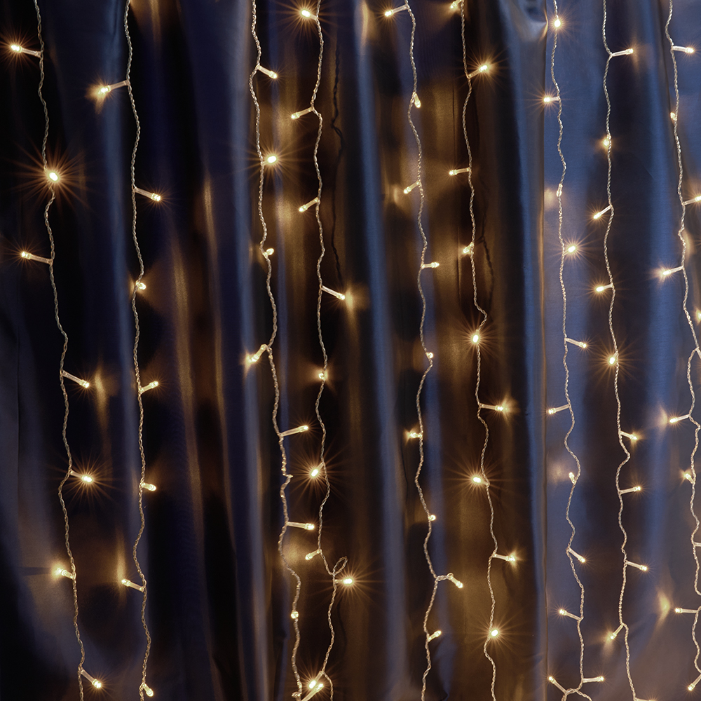 Гирлянда дождь FERON CL19, 204LED, 2700К (теплый белый), с эффектом стробов, 2*1,5м+3м белый шнур, расстояние между светодиодами 10см, IP44, 10W, от сети последовательное подключение до 5 гирлянд