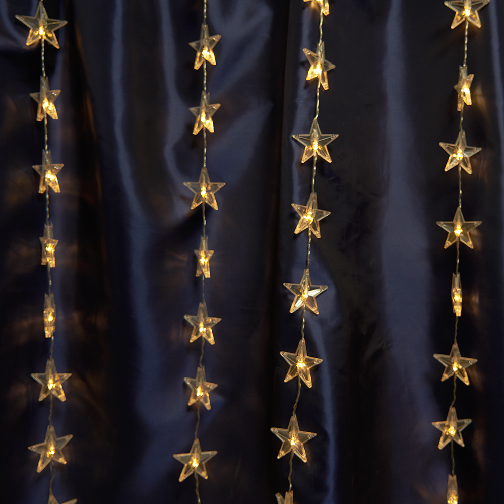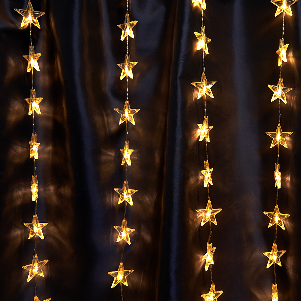 Светодиодная гирлянда Feron CL25 занавес Звездочки 2*1м + 3м 2700K с контроллером, c питанием от сети 230V, прозрачный шнур