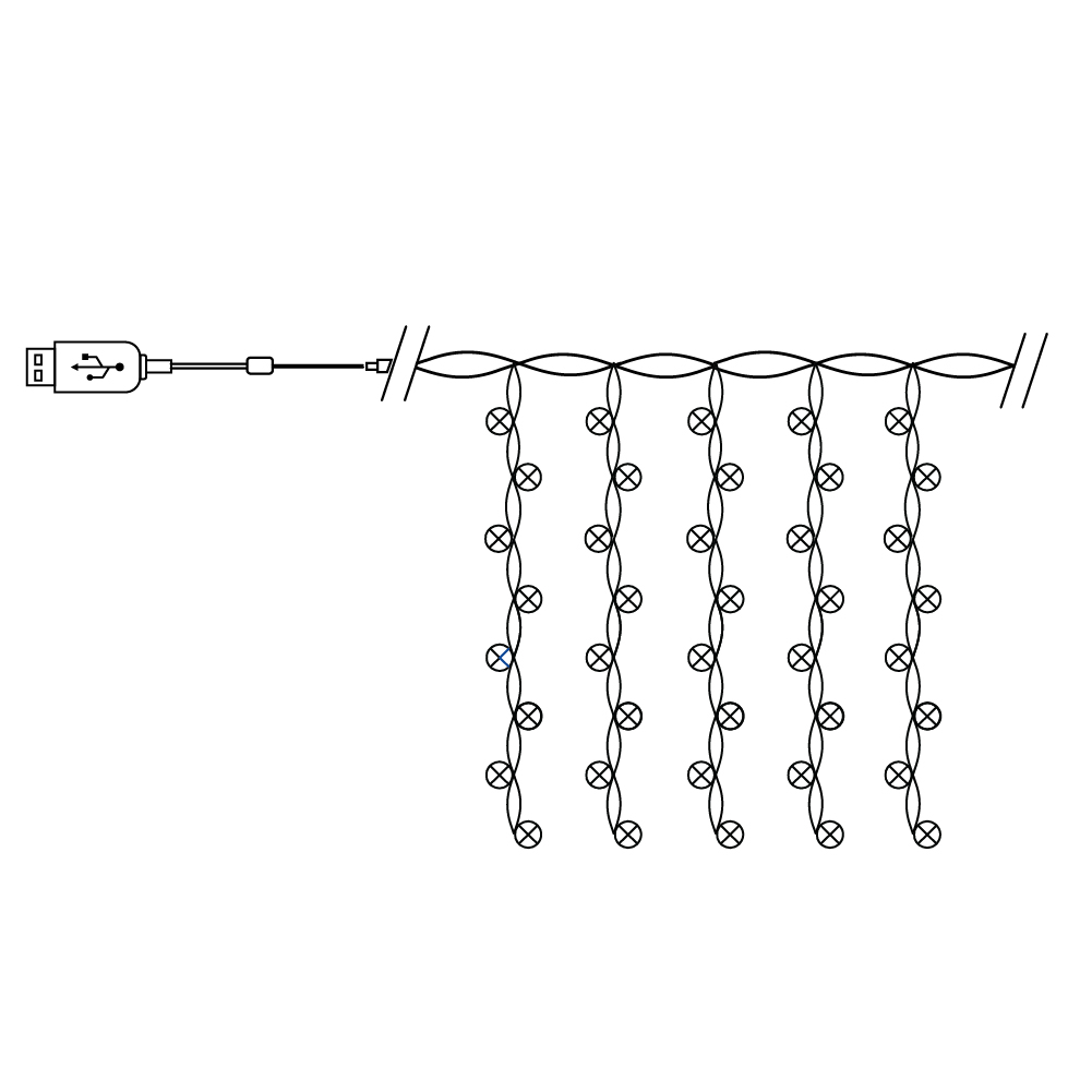 Светодиодная гирлянда Feron CL590 занавес типа Роса 2*2м + 2м мультиколор USB, прозрачный шнур