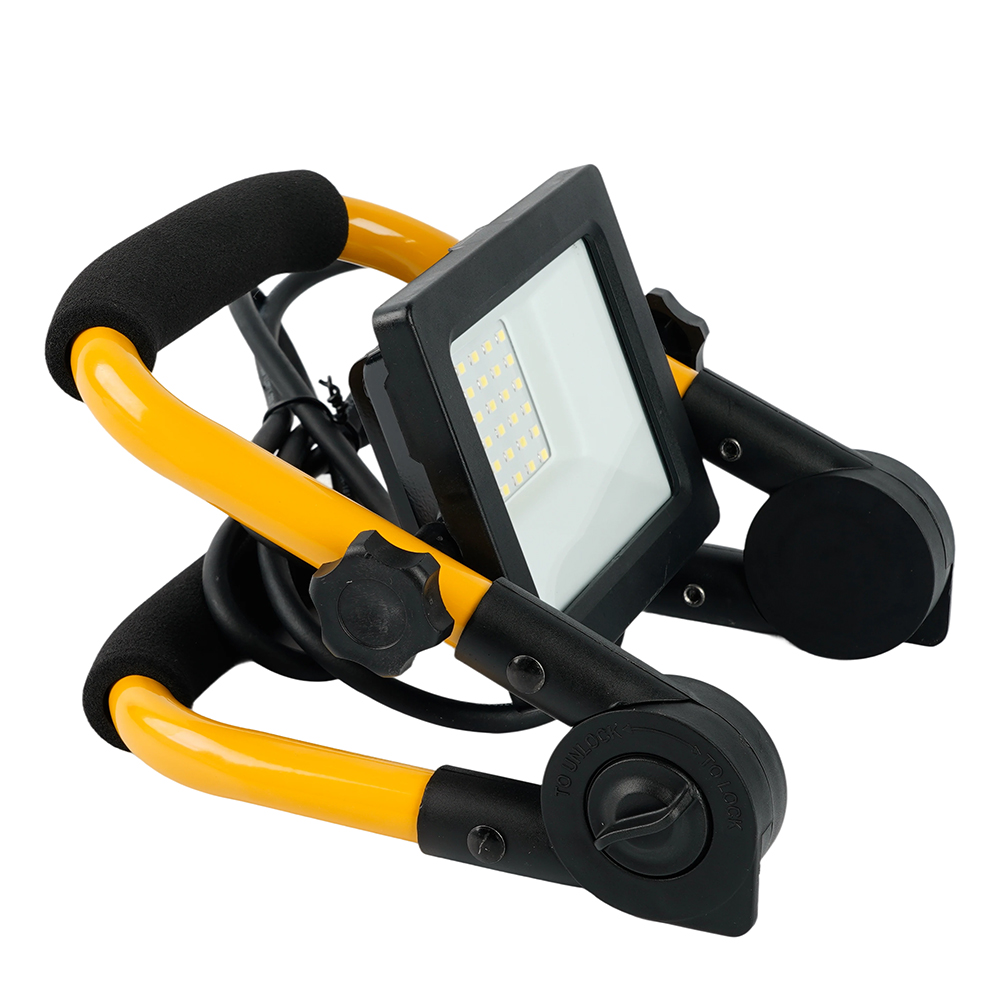Прожекторы светодиодные на штативе, переносные с ручкой, (ДО) FERON LL-513, 50W, 6400К (холодный белый), 230V/50Гц, 4500Lm, IP65, угол рассеивания 120°,*SMD2835, раб.t -40°C - +40°C, цвет черный-желтый, корпус алюминий литой под давлением + стекло, 178*57*200 мм