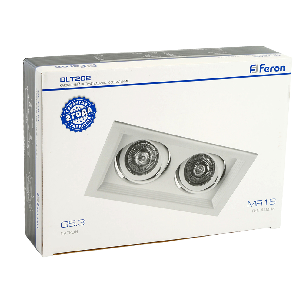 Светильник потолочный встраиваемый (ИВО) FERON DLT202, под лампу MR16 G5.3, белый, прямоугольник, 225*130*43 мм, монтажн.отв. 200*105мм, монтажный диаметр 105мм, корпус сталь, поворотный