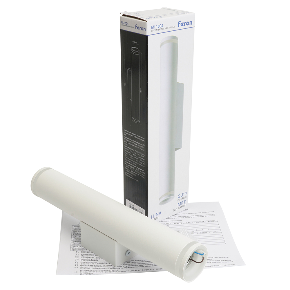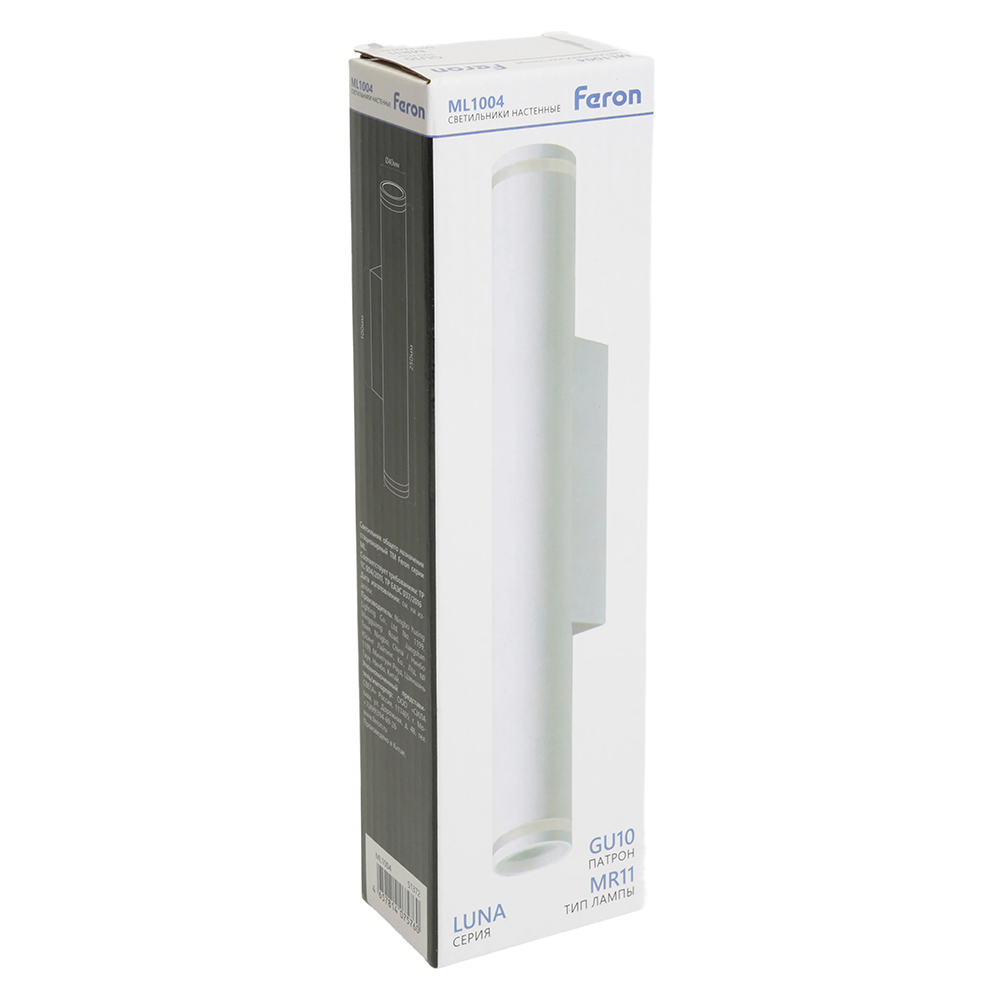 Светильник накладной под лампу, (-) FERON ML1004, 2*GU10 35W, 230V, IP20, цвет белый, корпус алюминий, акрил, 40*100*250