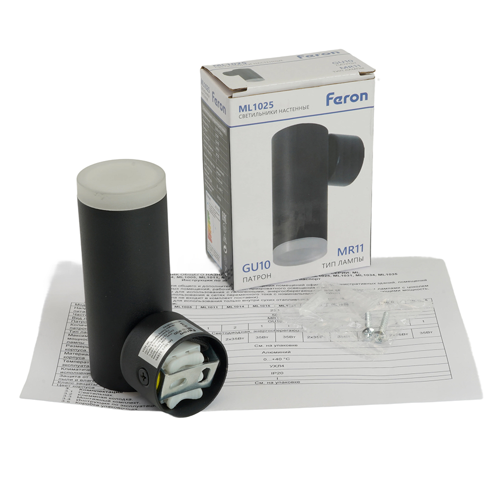 Светильник накладной под лампу, (-) FERON ML1025, GU10 35W, 230V, IP20, цвет черный, корпус алюминий, акрил, 40*40*100