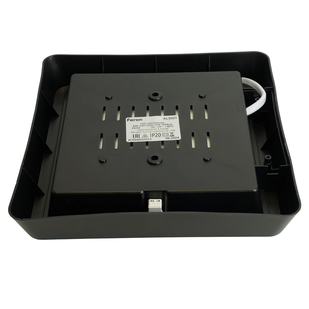 Светильник накладной светодиодный, квадрат (ДПБ) FERON AL3021, 15W, 6500К (дневной), 200-240V, 1200Lm, IP20, угол рассеивания 120°, цвет черный, корпус пластик, рассеиватель пластик, 170*170*35
