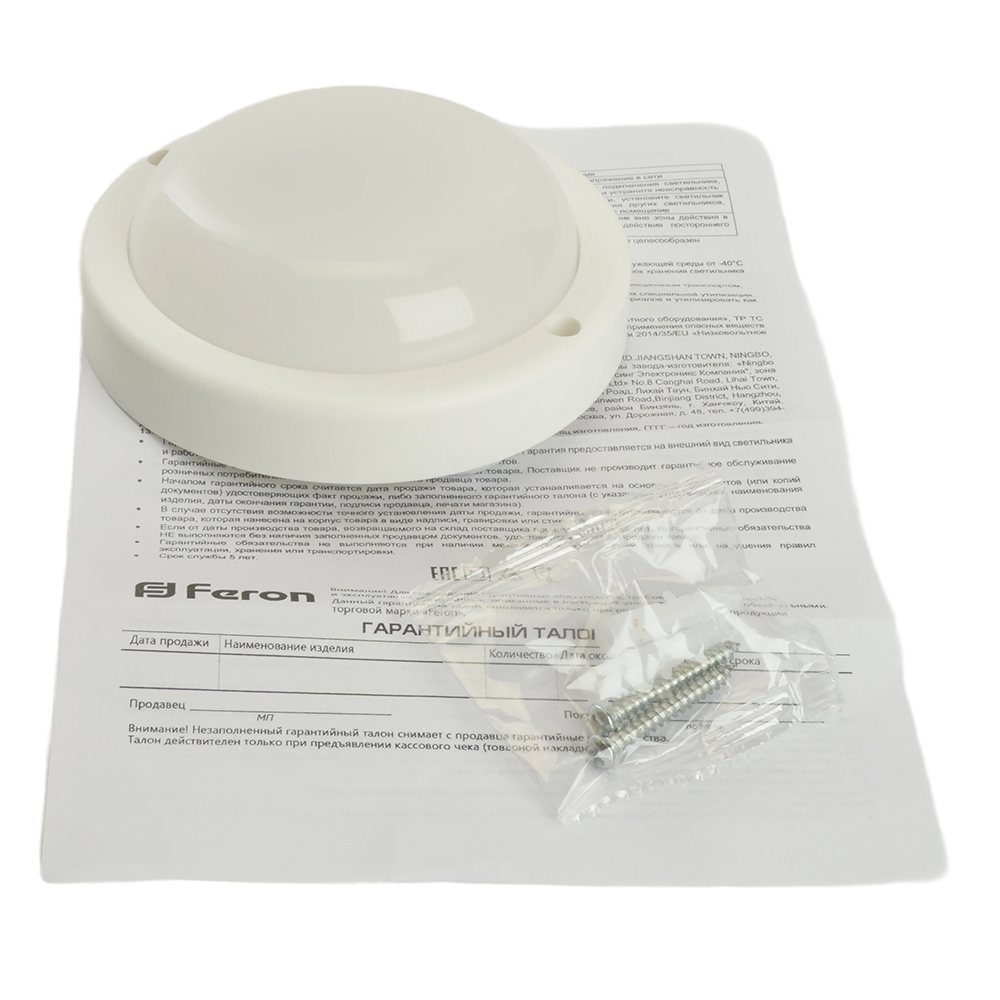 Светильник светодиодный пылевлагозащищённый с оптико- акустическим датчиком Feron AL3008 в пластиковом корпусе 8W 4000K 220V IP65 белый