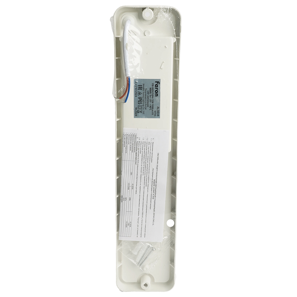 Светильник накладной светодиодный, пылевлагозащищённый (ДПБ) FERON AL3038, 12W, 4000К (белый), 170-265V, 1200Lm, IP65, угол рассеивания 120°, цвет белый, корпус пластик, рассеиватель пластик, 350*75*50