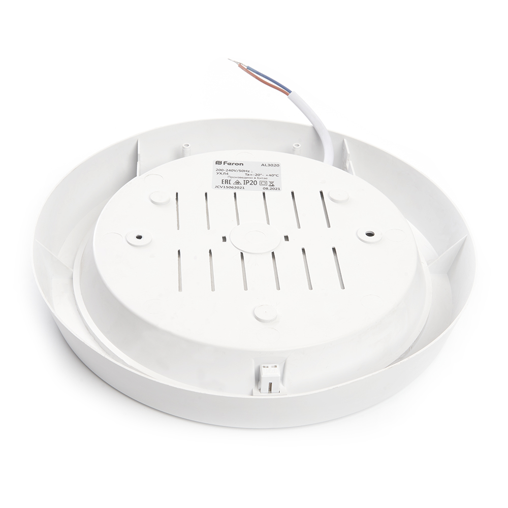 Светильник накладной светодиодный, круг (ДПБ) FERON AL3022, 25W, 6500К (дневной), 200-240V, 2000Lm, IP20, угол рассеивания 120°, цвет белый, корпус пластик, рассеиватель пластик, 210*210*35