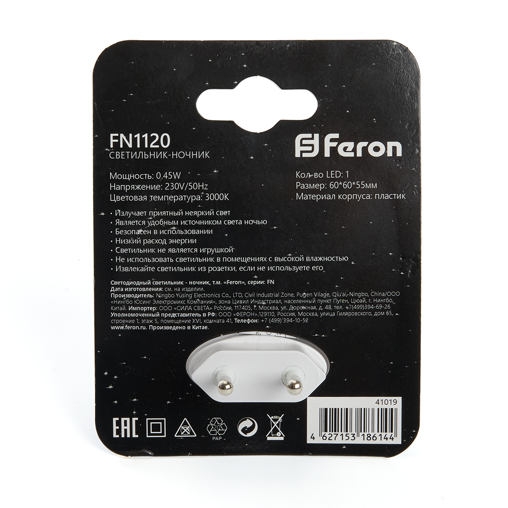 Светильник ночник Feron FN1120 0,5W 230V, белый