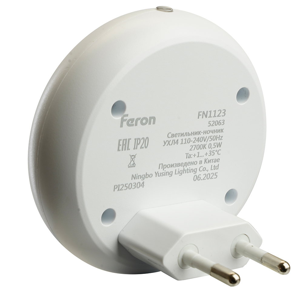Светильник ночник Feron FN1123 0,5W 230V, белый