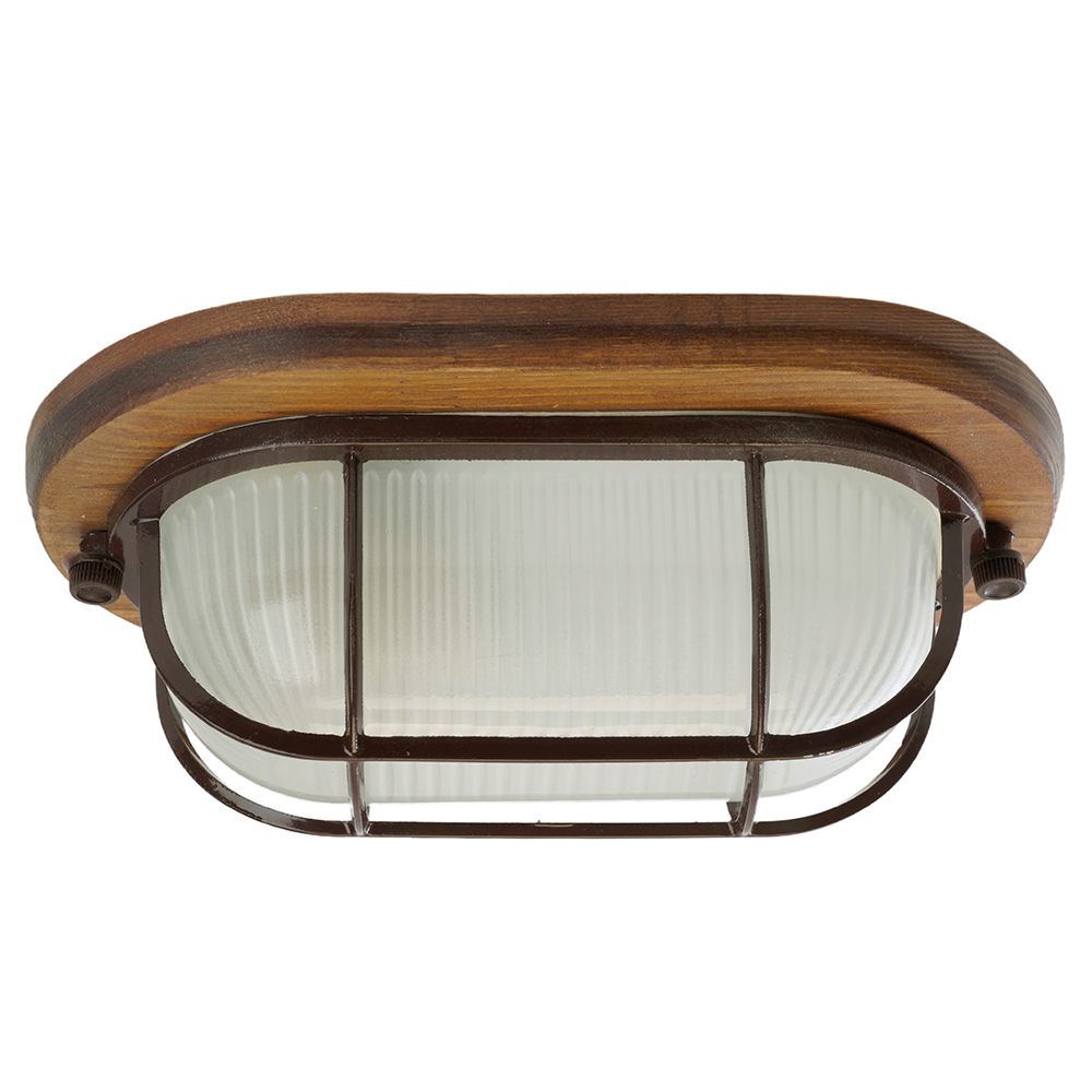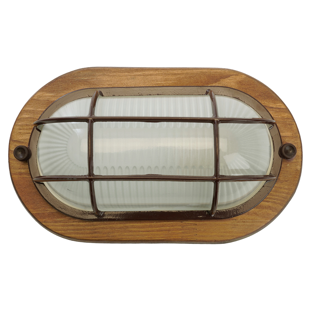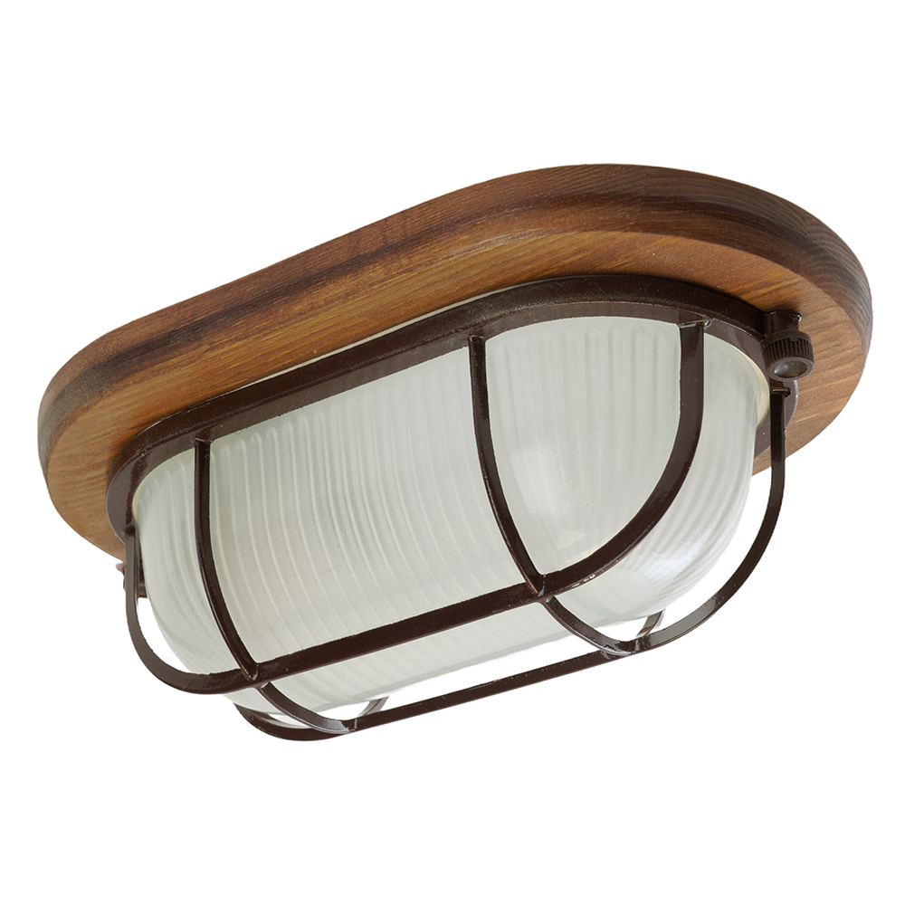 Светильник накладной IP54, 220V 60Вт Е27, дерево, орех, овал, с решеткой, НБО 04-60-022