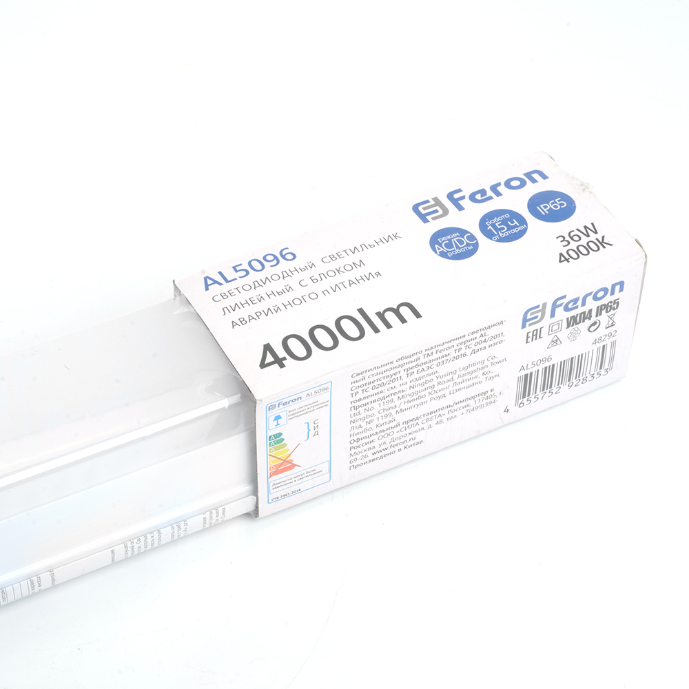 Светильник светодиодный линейный Feron с БАП IP65 36W 4000K 1200*60*55мм AL5096