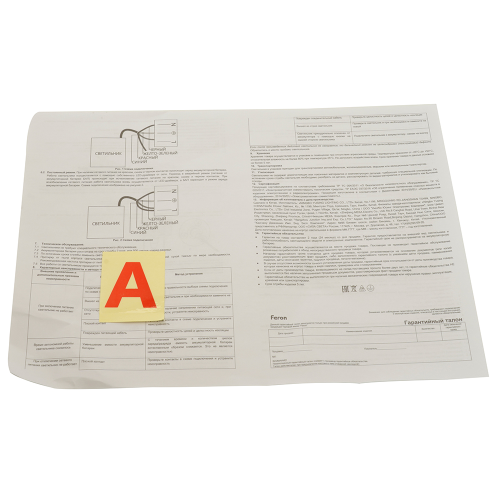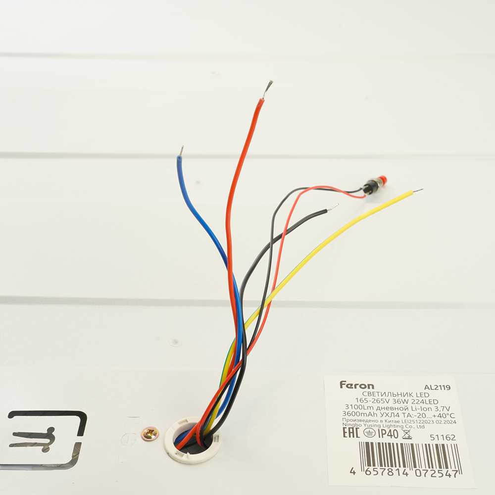 Светильник FERON AL2119 AC/DC, 224LED/дневной, 165-265V, IP40, аккумулятор 3,7/3600mAh/Li-Ion (литий-ионный), количество режимов 2, время зарядки 24 часа, время работы 1 час, цвет белый, 595*595*19мм