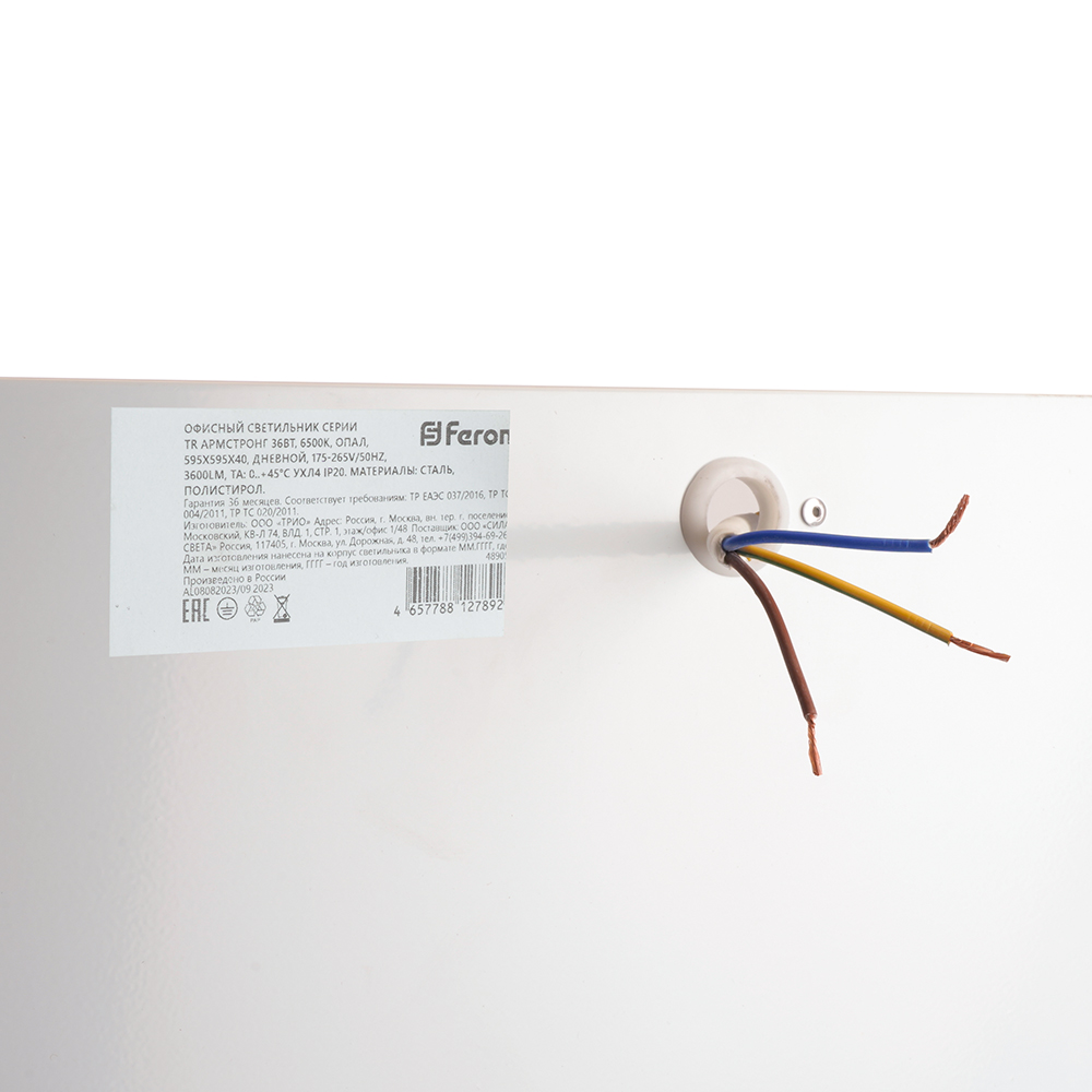 Светильник встраиваемый светодиодный, АРМСТРОНГ (ДВО) FERON Офисный светильник серии TR Армстронг 36Вт, 6500К, опал, 36W 6500К (дневной), 175-265V, 3600Lm, IP20, угол рассеивания 120°, цвет белый, корпус сталь, рассеиватель полистирол, 595*595*40 мм, монтажн.отв. 595*595 мм.