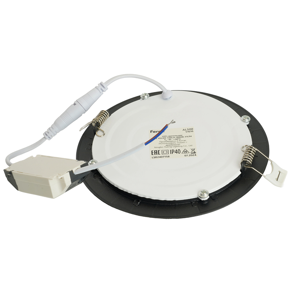 Светильник встраиваемый светодиодный, ультратонкий (ДВО) FERON AL500, 9W 4000К (белый), 175-265V, 720Lm, IP40, угол рассеивания 120°, цвет черный, корпус алюминий, рассеиватель матовый акриловый полимер, 145*145*18 мм, монтажн.отв. 135*135 мм.