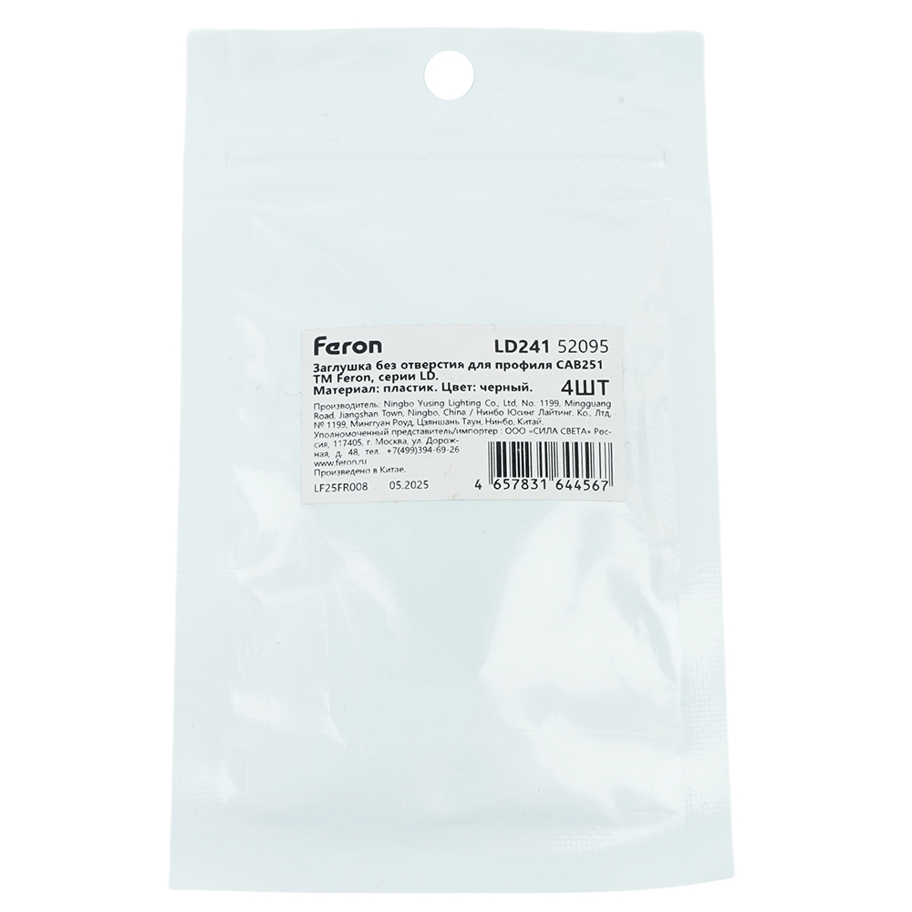 Заглушка для профиля FERON LD241 «без отверстия», цвет черный, в комплекте 4 шт, 14*5*9мм
