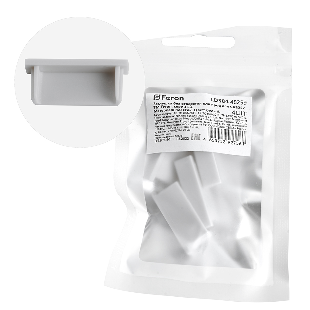 Заглушка для профиля FERON LD384 «без отверстия», цвет белый, в комплекте 4 шт, 24*6*9мм
