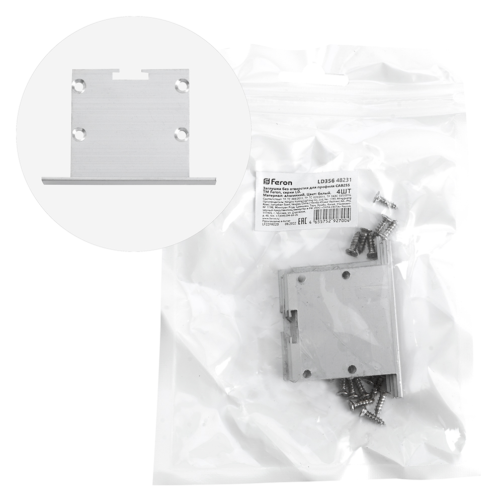 Заглушка для профиля FERON LD356 «без отверстия», цвет серебро, в комплекте 4 шт, 50*8*35мм