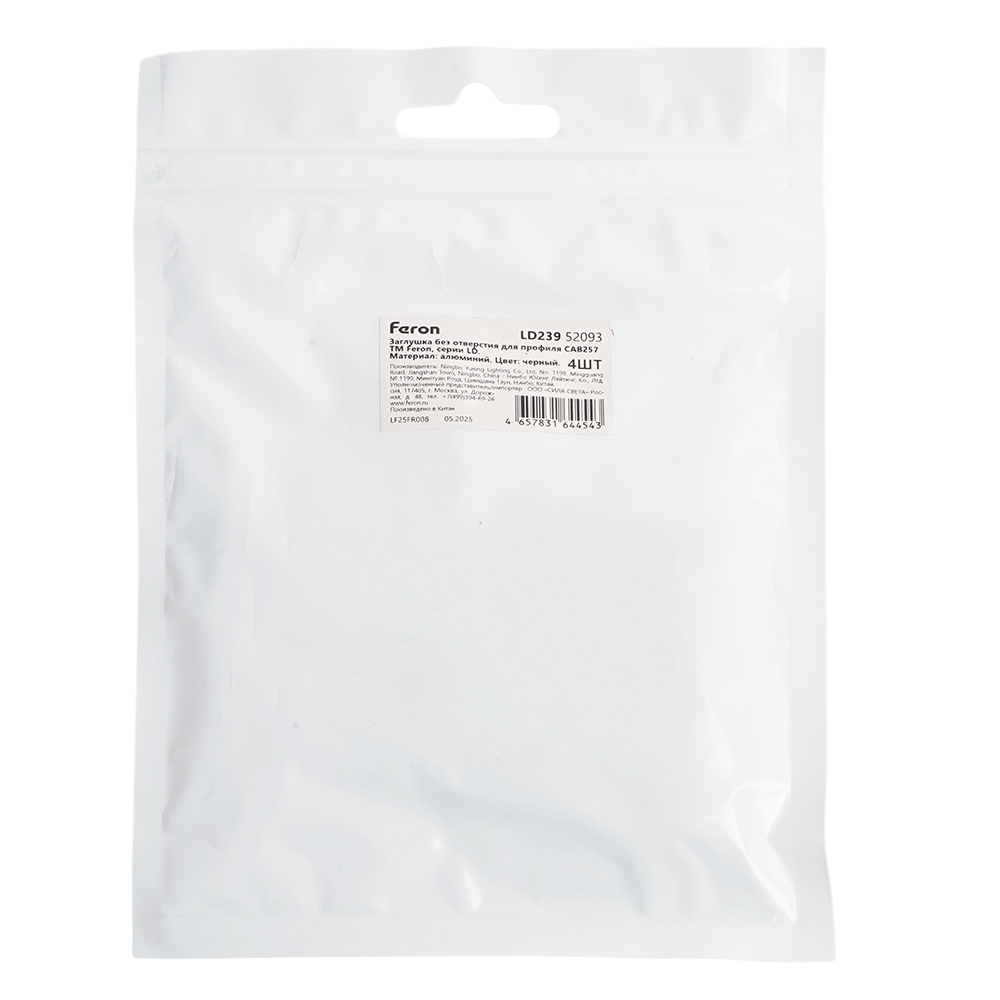 Заглушка для профиля FERON LD239 «без отверстия», цвет черный, в комплекте 4 шт, 50*2*34мм