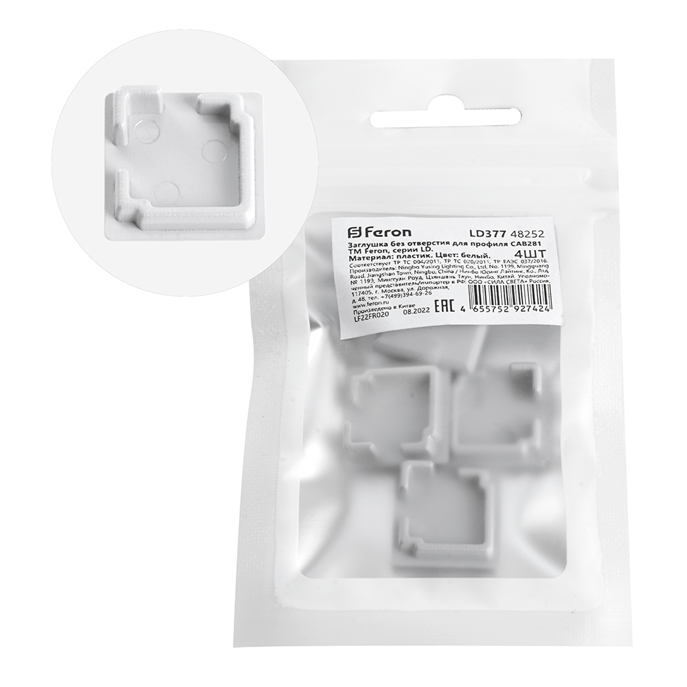 Заглушка для профиля FERON LD377 «без отверстия», цвет белый, в комплекте 4 шт, 16*4*16мм