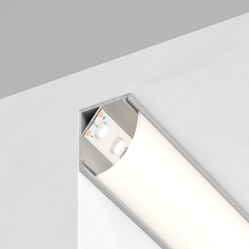Профиль накладной для светодиодной ленты FERON CAB280 «угловой круглый», цвет серебро, в комплекте 2 заглушки + экран + 4 крепежа, 2000*16*16мм