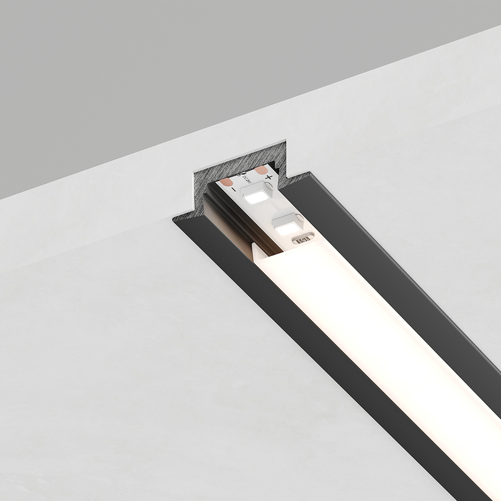 Профиль алюминиевый "встраиваемый" без крепежей, черный, CAB251( в комплекте с матовым экраном, 2 заглушками) FERON