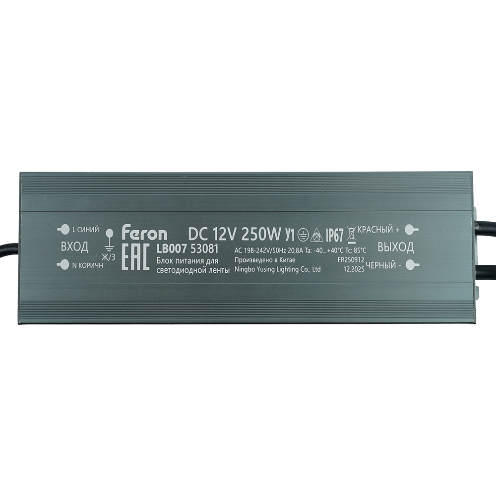 Трансформатор электронный для светодиодной ленты 250W 12V IP67 (драйвер), LB007 FERON