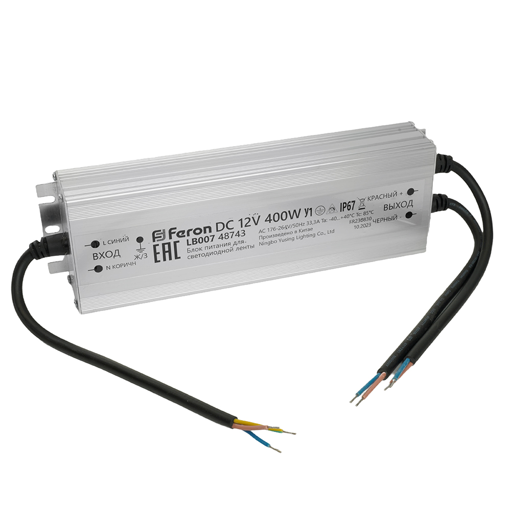 Трансформатор электронный для светодиодной ленты 400W 12V 245*77*41мм IP67 (драйвер), LB007 FERON