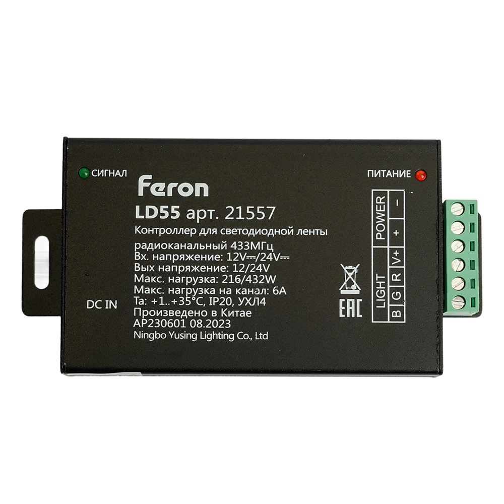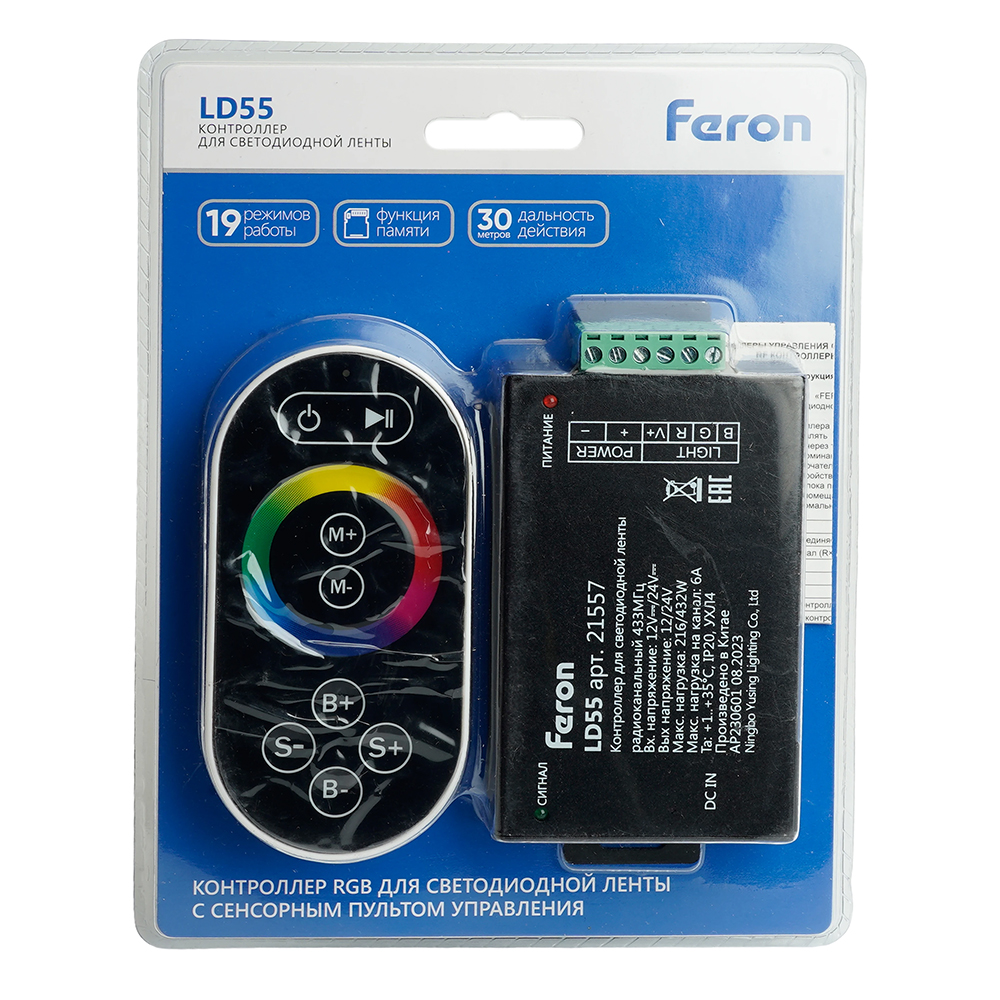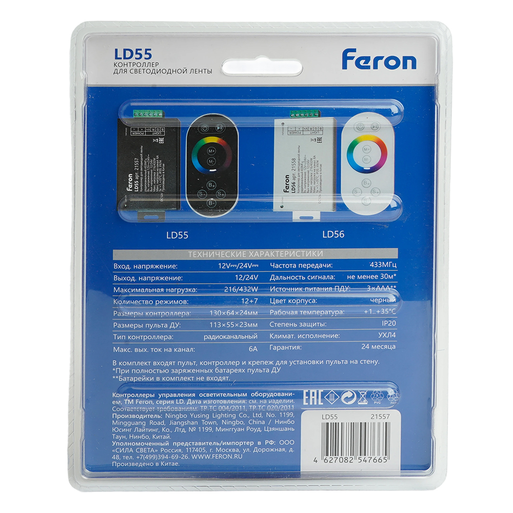 LD55 Контроллер RGB с пультом ЧЕРНЫЙ, 12-24V (для RGB LS606,607) 130*64*24 FERON