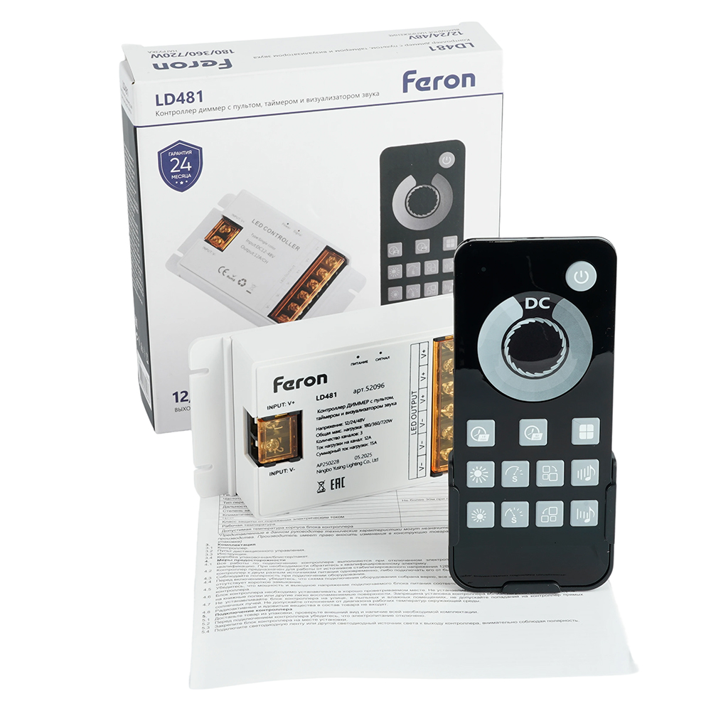 LD481 Контроллер ДИММЕР с пультом, таймером и визуализатором звука, 12-24-48V