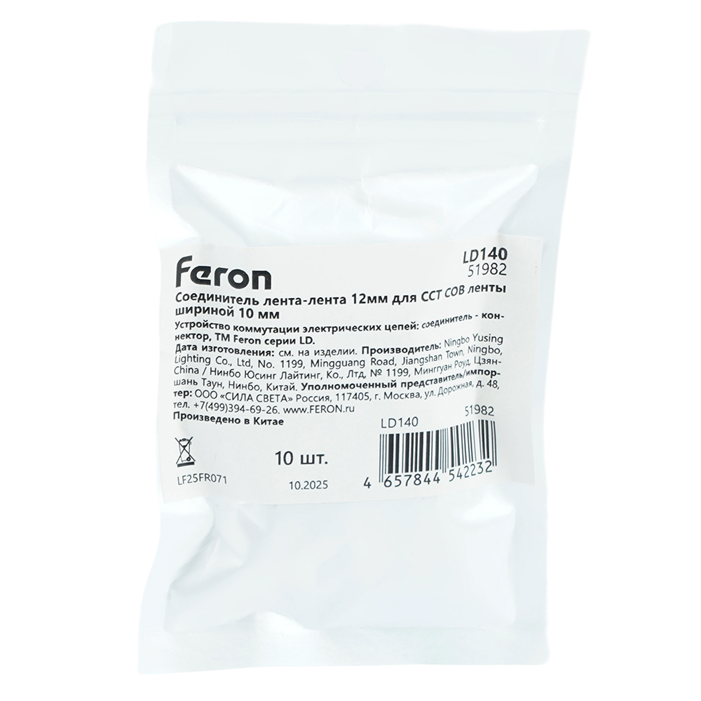 Соединитель лента-лента 10мм для CCT COB ленты шириной 8 мм, LD140 FERON