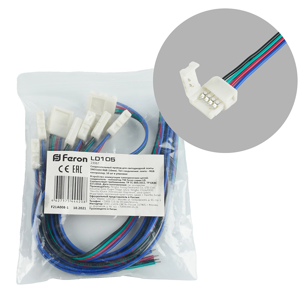 LD105 Соединительный провод для светодиодной ленты (RGB/10мм ), RGB лента - контроллер