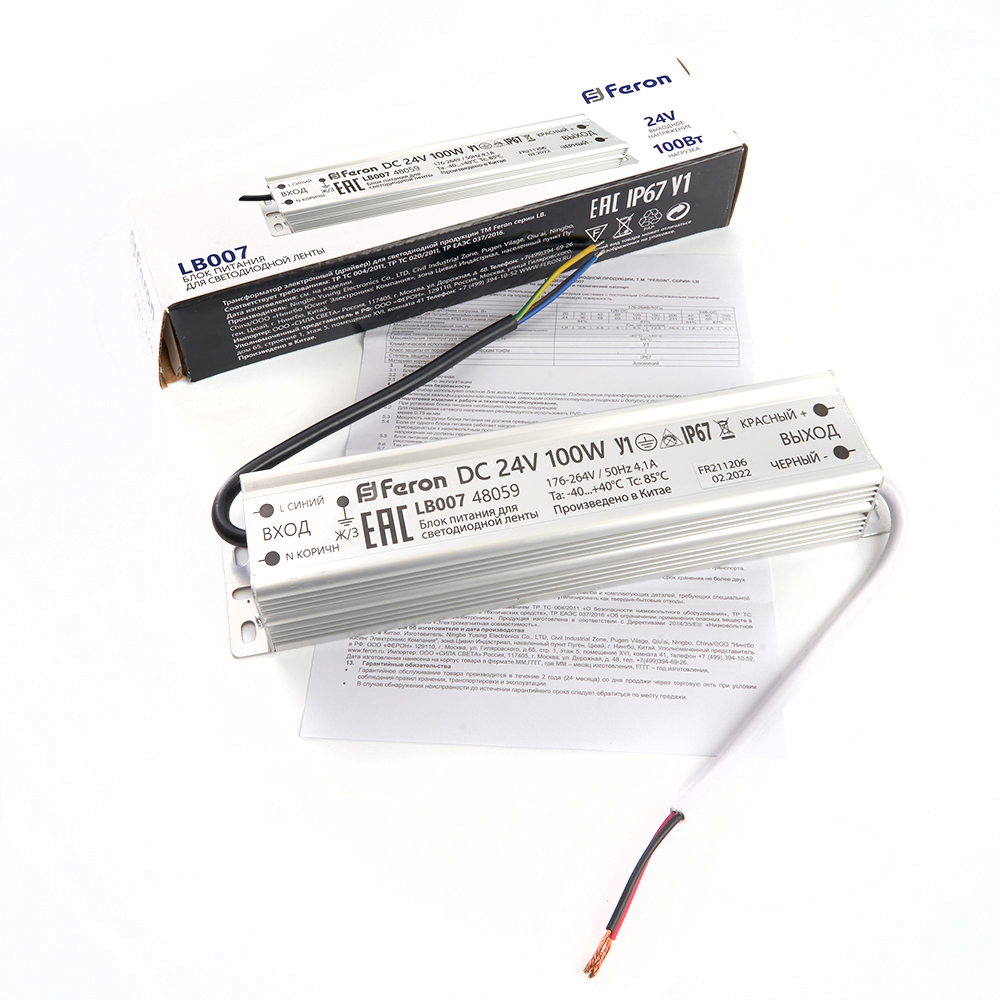 Трансформатор электронный для светодиодной ленты 100W 24V IP67 (драйвер), LB007 FERON