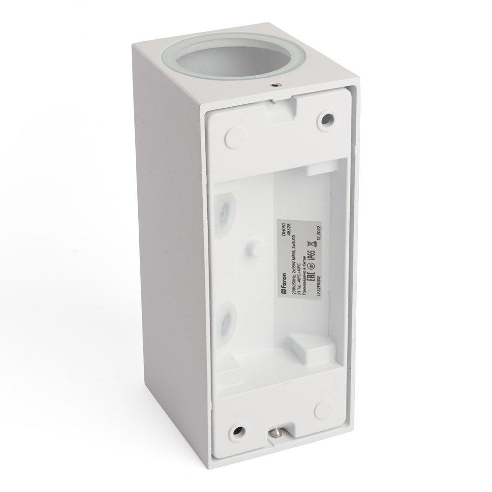 Светильник садово-парковый, серии «Бостон», (ДБУ) FERON DH051 35W, GU10, 230V, IP65, цвет белый, прямоугольник, на стену , 68*78*160мм