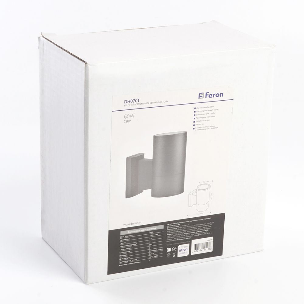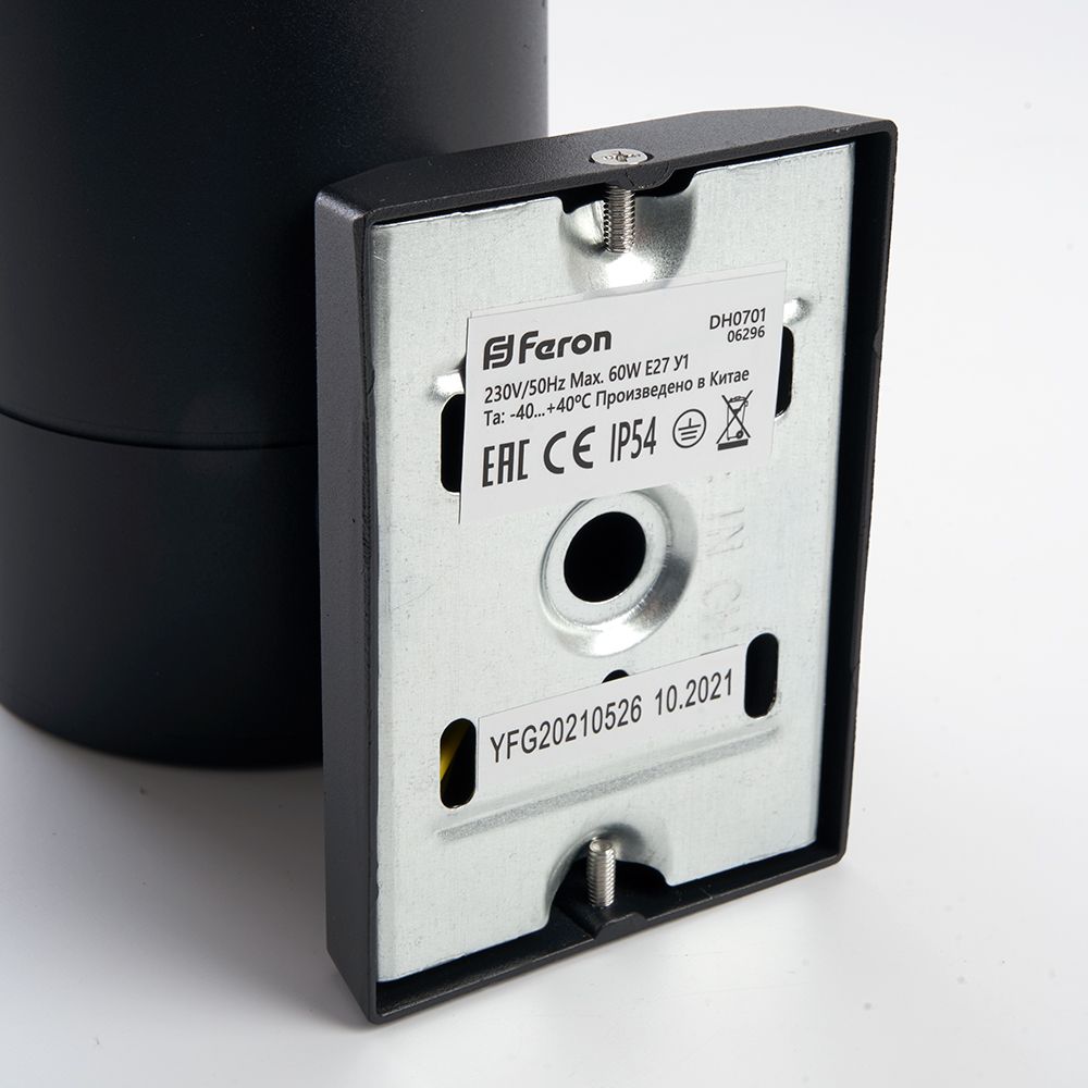 Светильник садово-парковый, серии «Бостон», (НБУ) FERON DH0701 60W, E27, 230V, IP54, цвет черный, цилиндр, на стену вверх, 155*90*160мм