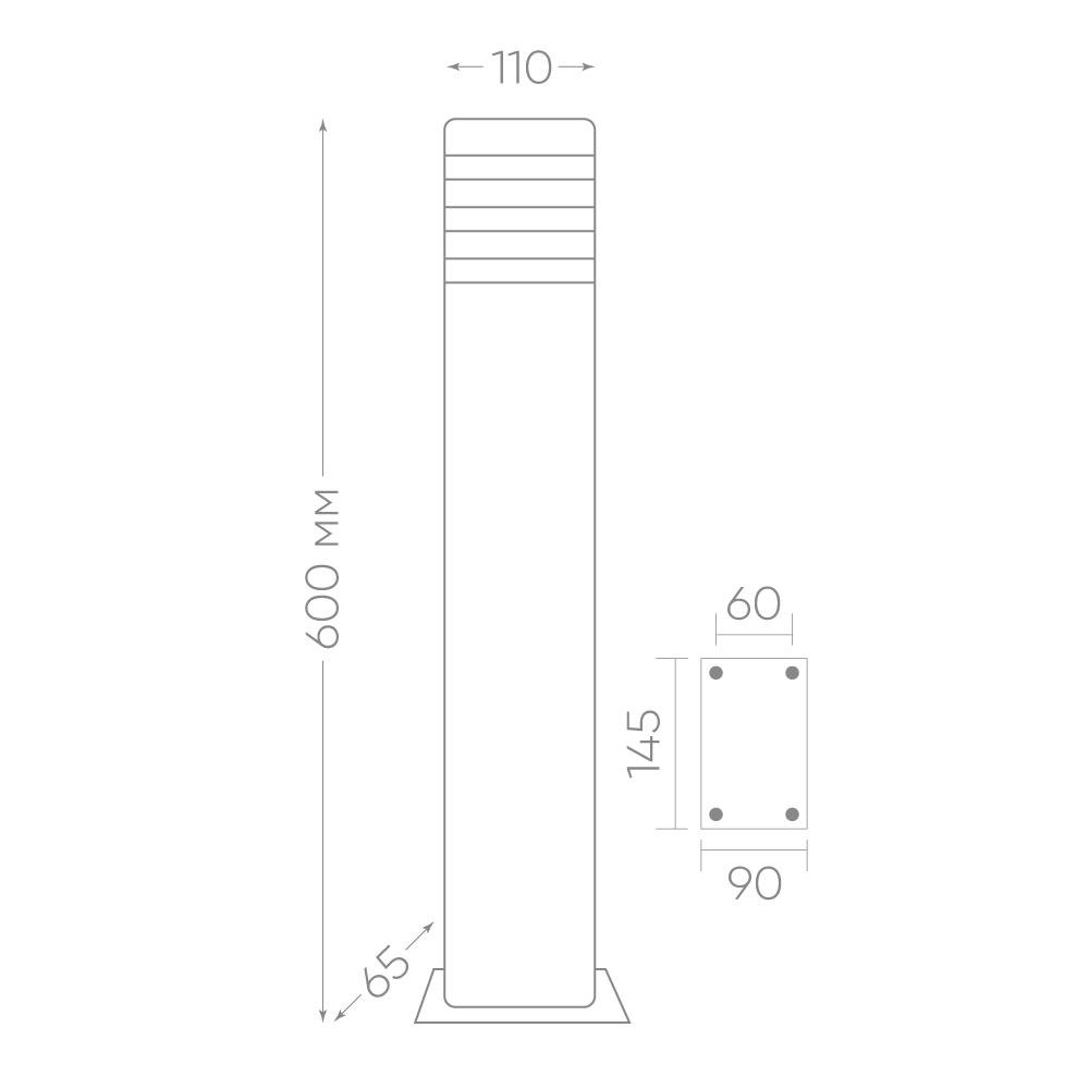 Светильник садово-парковый, серии «Сеул», (НТУ) FERON DH0808 60W, E27, 230V, IP54, цвет черный, прямоугольник, столб, 110*65*600мм