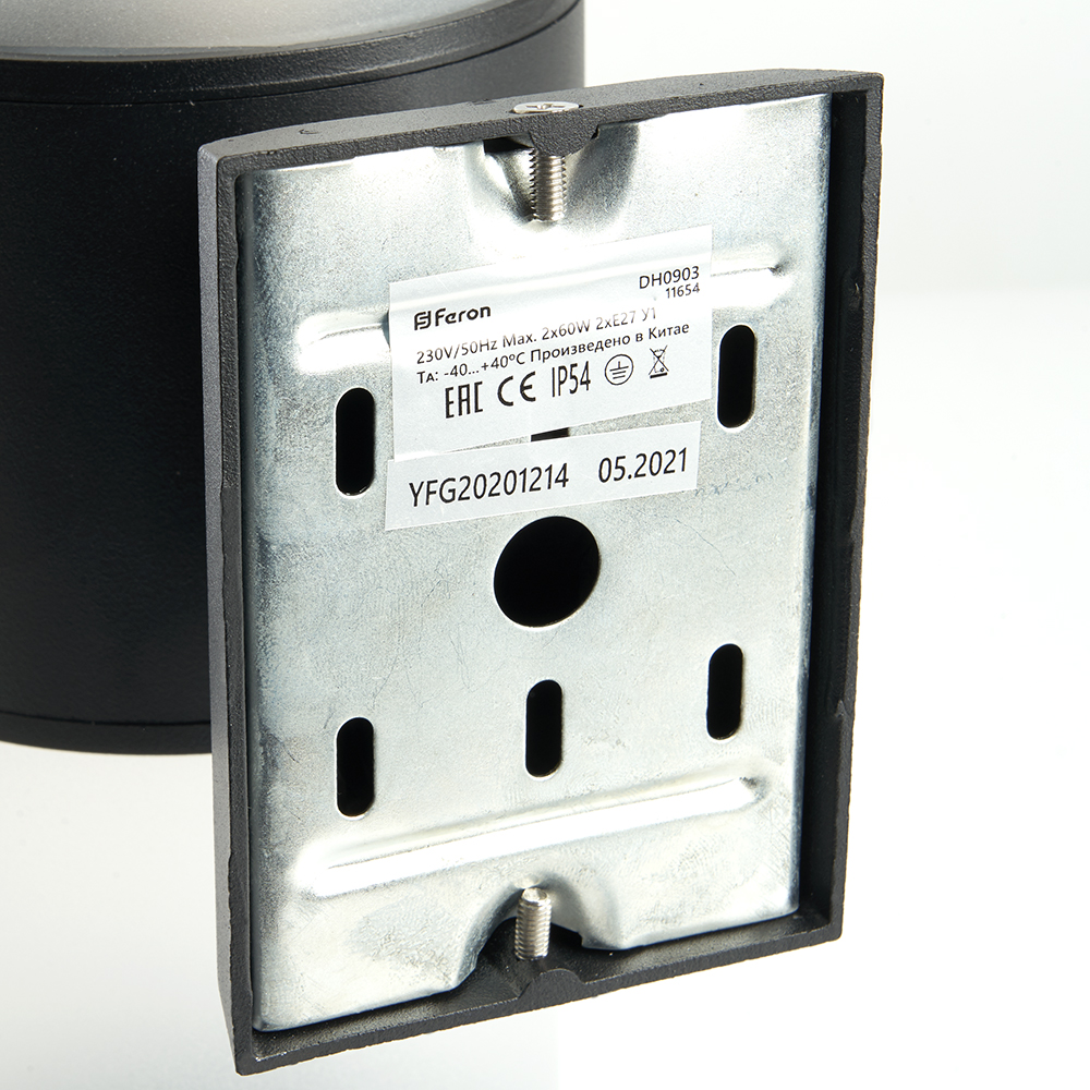 Светильник садово-парковый Feron DH0903,на стену вверх/вниз, E27 230V, черный