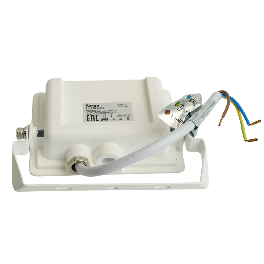 Прожектор светодиодный многоматричный с монтажным креплением на кронштейн, (ДО) FERON LL-920 , 30W, 6400К (холодный белый), 230V/50Гц, 3000Lm, IP65, угол рассеивания 120°, 24*SMD2835, раб.t -40°C - +40°C, цвет белый, корпус алюминий литой под давлением + стекло, 127*107*28 мм