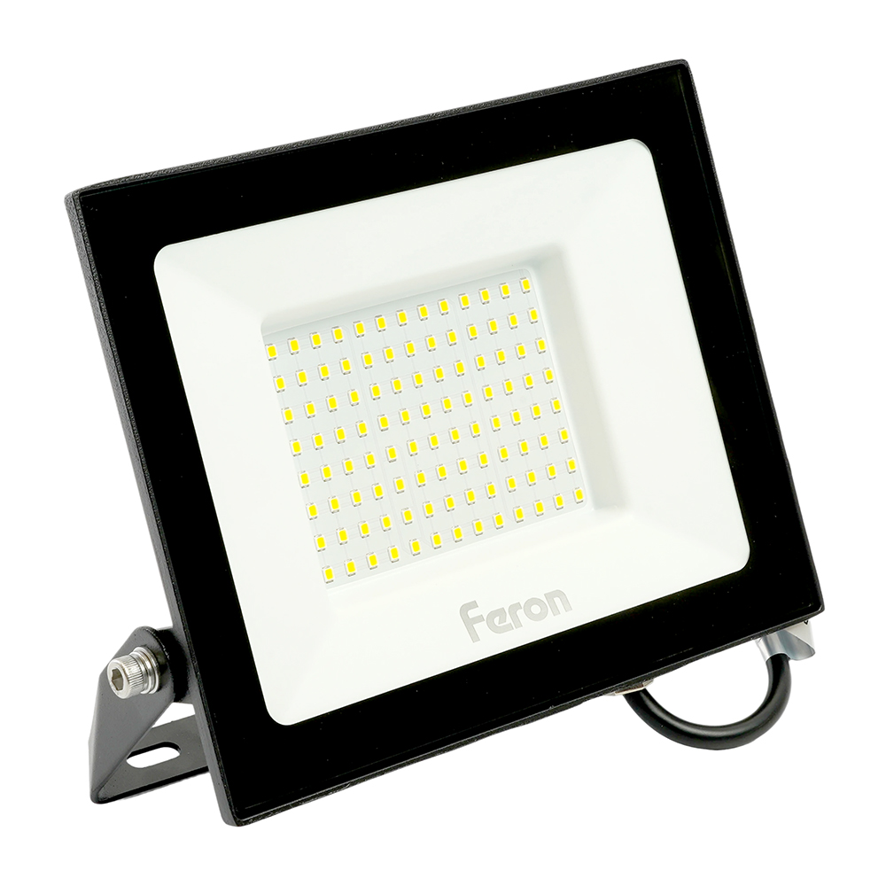 Прожектор светодиодный многоматричный с монтажным креплением на кронштейн, (ДО) FERON LL-922, 100W, 4000К (белый), 230V/50Гц, 10000Lm, IP65, угол рассеивания 120°, 104*SMD2835, раб.t -40°C - +40°C, цвет чёрный, корпус алюминий литой под давлением + стекло, 216*171*32 мм